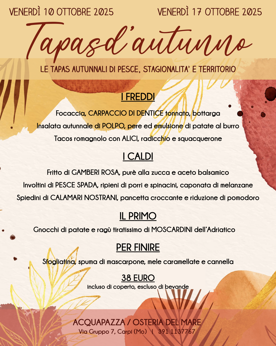 Con l'inizio dell'autunno abbiamo pensato a qualcosa che mettesse insieme la varietà del nostro mare adriatico che in questa stagione è ricchissimo e i prodotti della nostra Emilia, le verdure e la frutta autunnale.